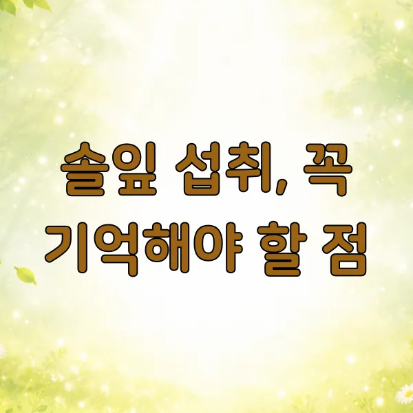 솔잎, 제대로 알고 먹으면 우리 몸에 정말 좋은 친구가 될 수 있어요. 오늘 알려드린 팁들을 잘 기억하셔서 싱그러운 솔잎의 매력을 안전하고 맛있게 즐겨보시길 바라요!